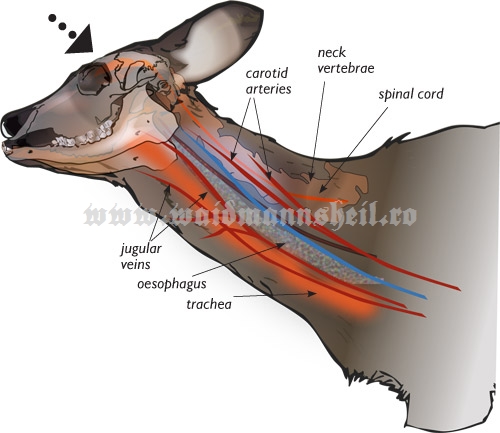 in sus, dar este admisa si vanarea cu proiectil unic tras din arme lise. Trofeul il