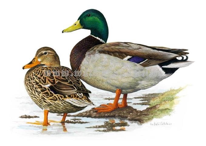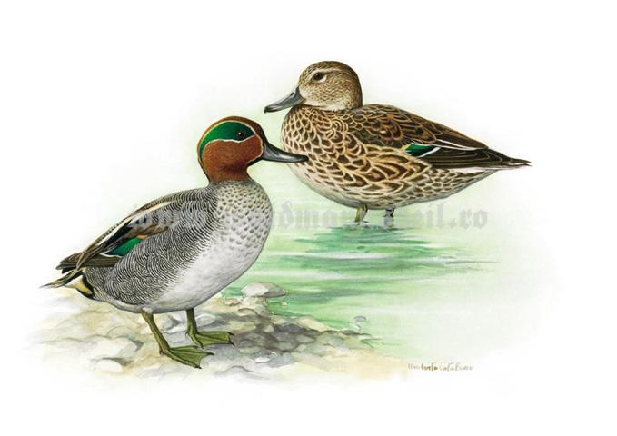mare decat rata, se prezinta mai viu colorat. Are capul si gatul verzi-metalizat,